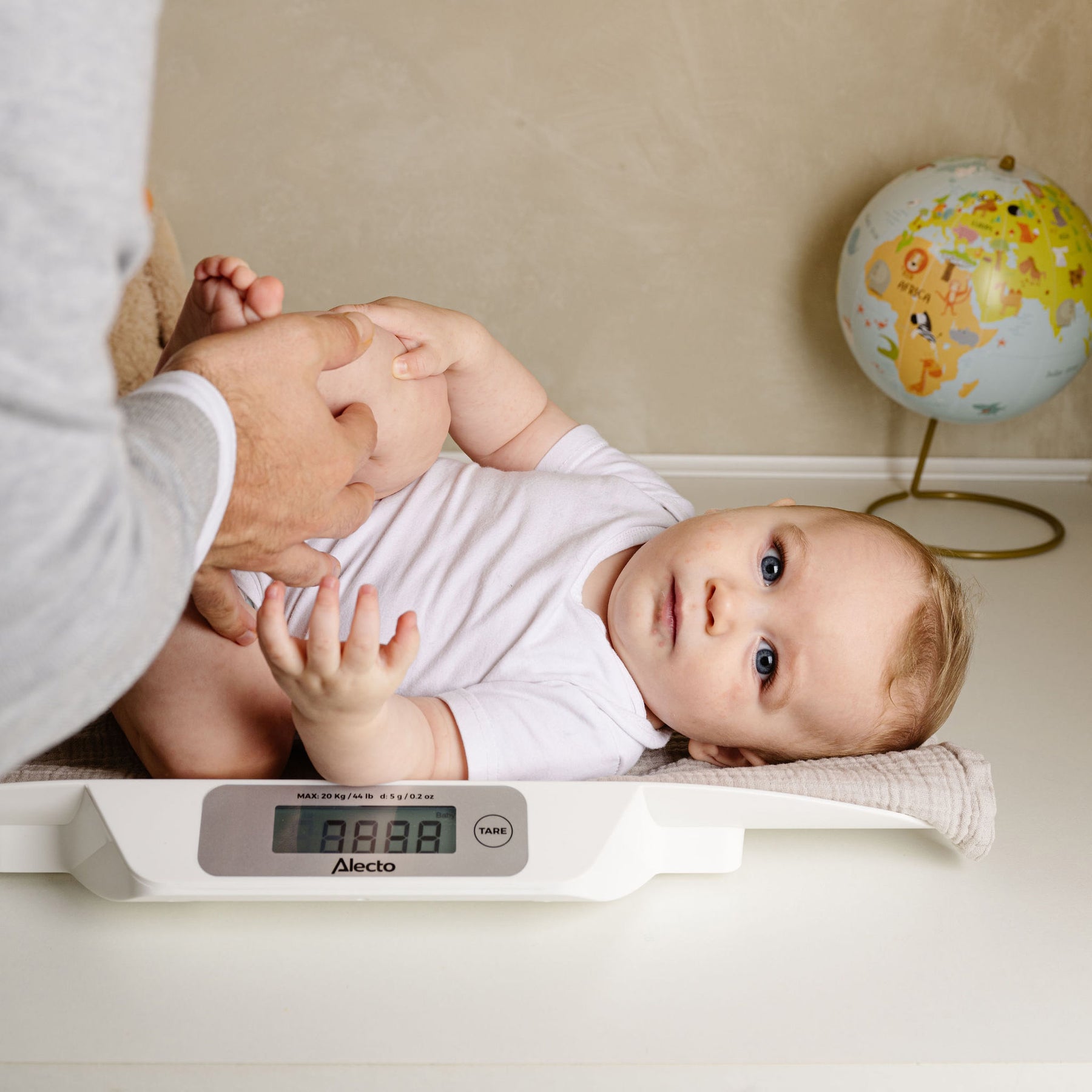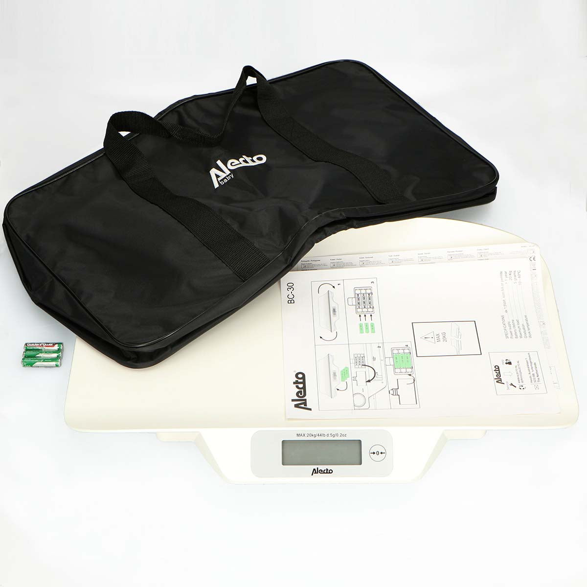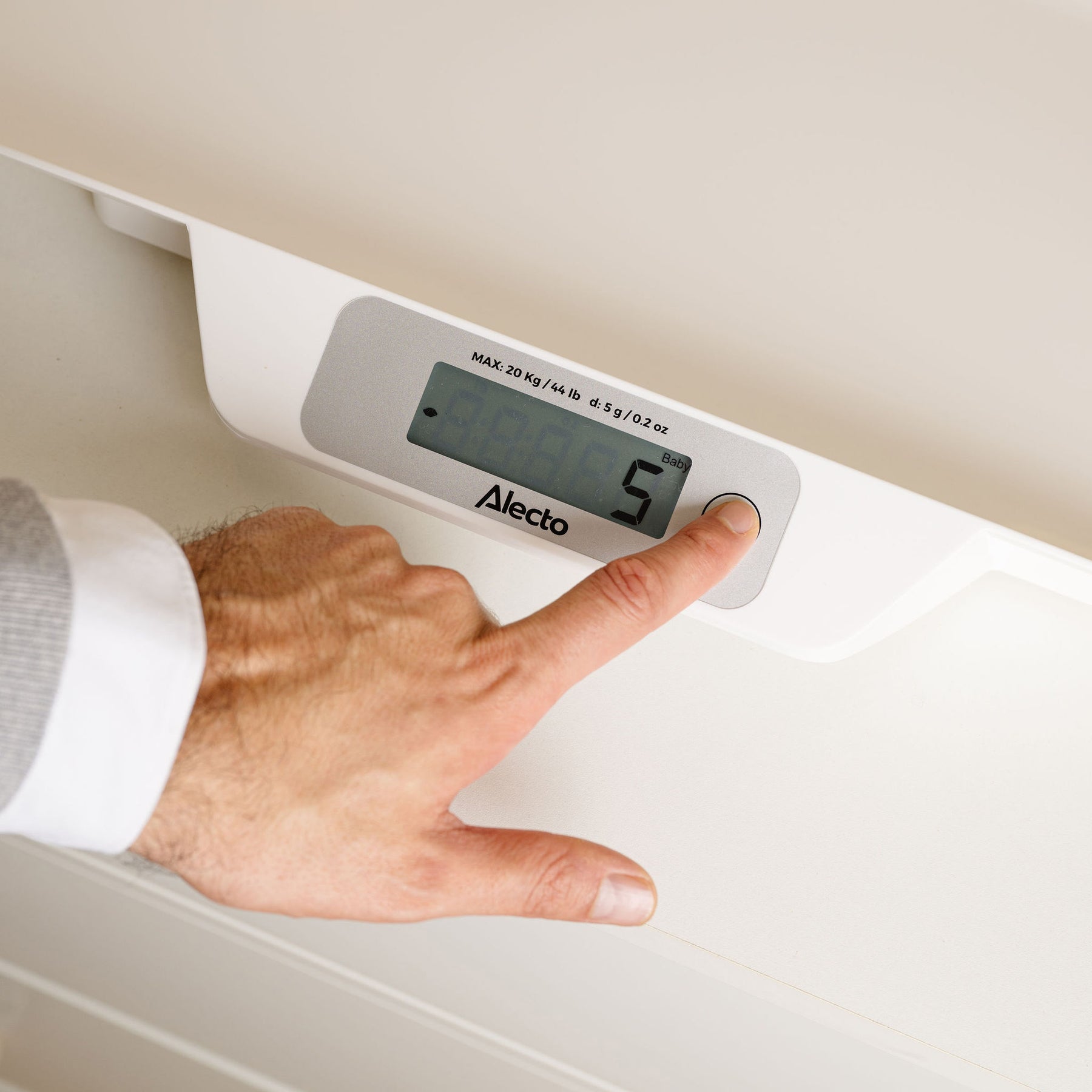 - Die Babywaage wiegt bis zu 20 Kilogramm und ist bis zu 5 Gramm genau.