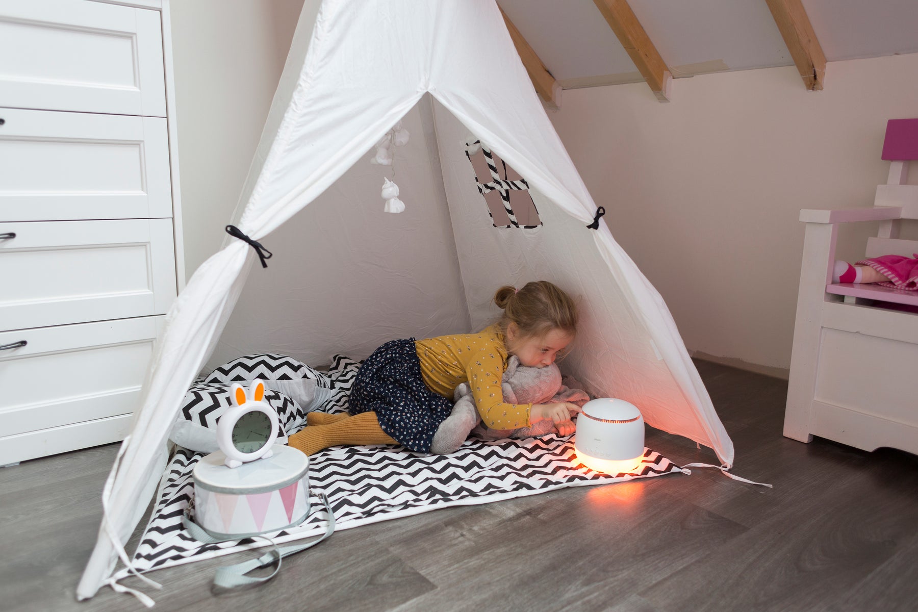 - Die einstellbare Nachtbeleuchtung sorgt für ein stimmungsvolles und farbenfrohes Bild, das die Augen Ihres Kindes zum Leuchten bringt (bis sie ganz von alleine zufallen).