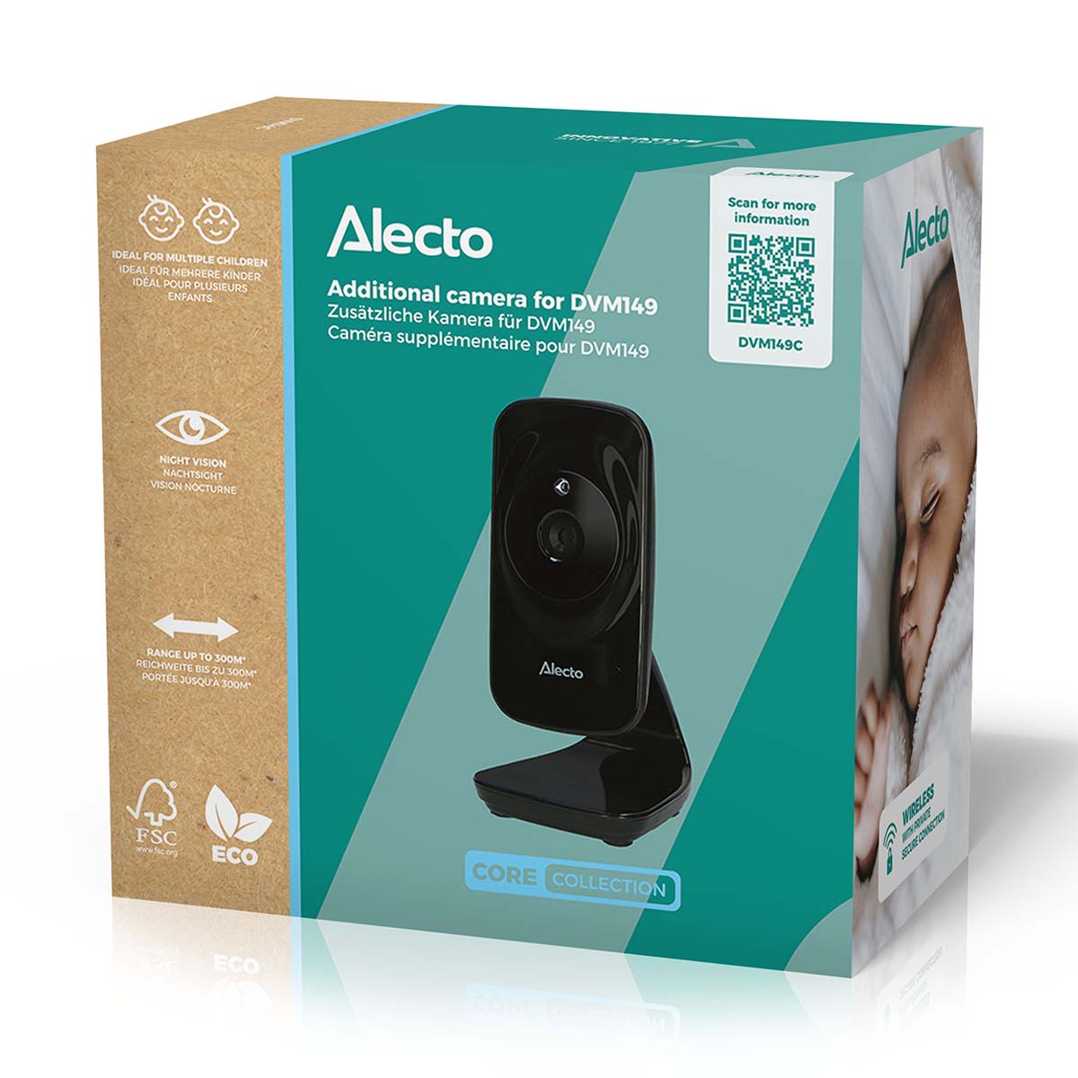 Die Alecto Baby DVM149C ist eine zusätzliche Kamera für das Babyphone DVM149 in der Farbe Schwarz. Die Kamera eignet sich bestens für Eltern mit mehreren Kindern. Sie hat eine große Reichweite – bis zu 50 Meter in Innenräumen und 300 Meter im Freien – und gibt den Eltern die Freiheit, ihre Arbeiten zu erledigen, während ihr Baby schläft. An 1 Elterneinheit können maximal 4 Kameras angeschlossen werden.