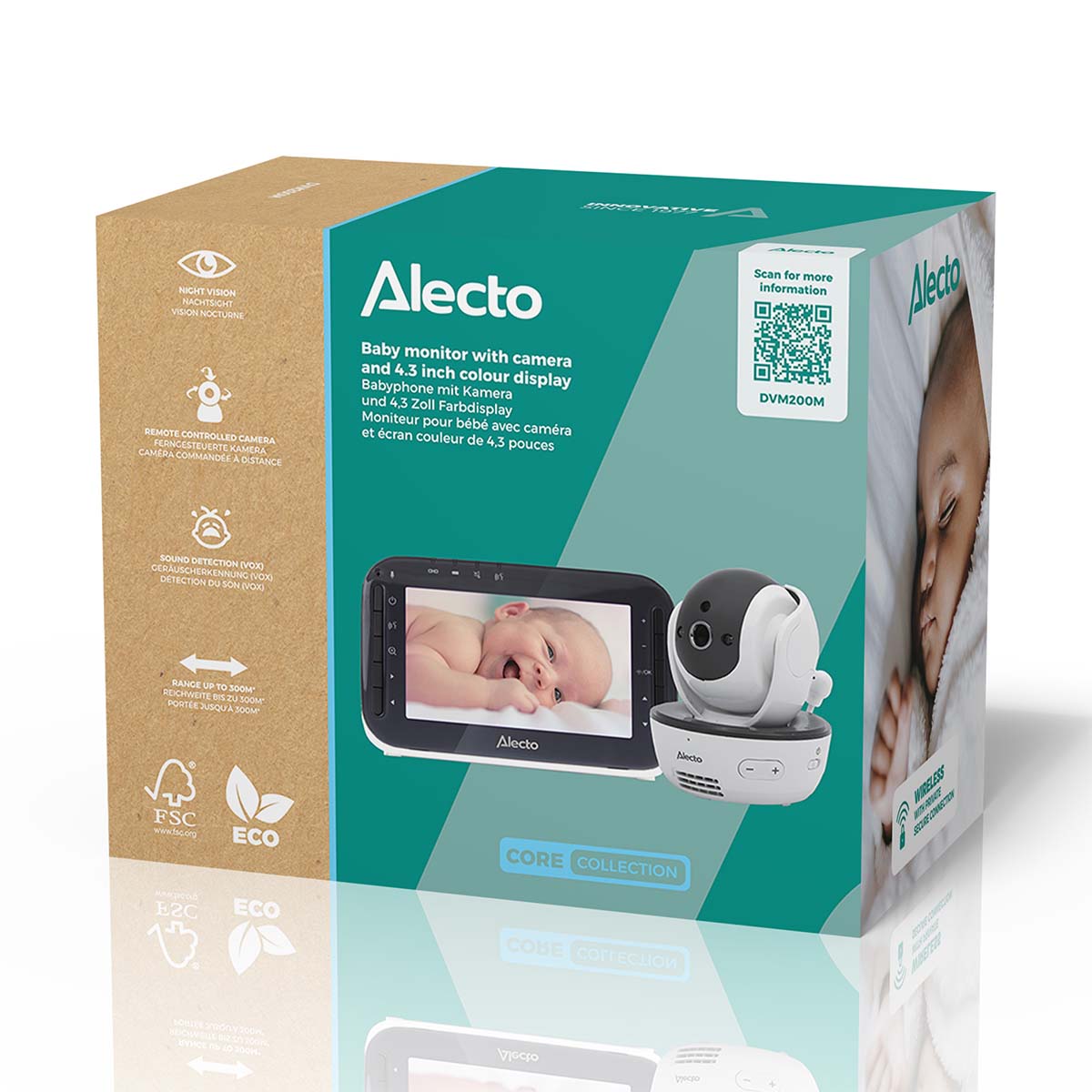 Das Alecto Baby DVM200M ist ein Babyphone mit Kamera und mit einer hervorragenden Bild- und Tonqualität. Die Babyphone der DVM-200-Serie gehören seit Jahren zu den meistverkauften Babyphonen. Mit dem DVM200 können Sie Ihr Baby über die kabellose, wiederaufladbare Elterneinheit natürlich immer hören und sehen. Auf dem großen 4,3 Zoll / 10,9 cm Farbbildschirm können Sie sofort sehen, was im Kinderzimmer vor sich geht. Und das alles über die Babyeinheit, die ferngesteuerte Kamera mit kristallklarem Ton und klarem Bild, und das nicht nur bei Tag, sondern auch in der Nacht. Insgesamt können bis zu 4 Kameras an die Elterneinheit angeschlossen werden (DVM200C). Neben den grundlegenden Funktionen verfügt dieses Babyphone über viele Zusatzfunktionen, die es zu einem vollausgestatteten Gerät machen.