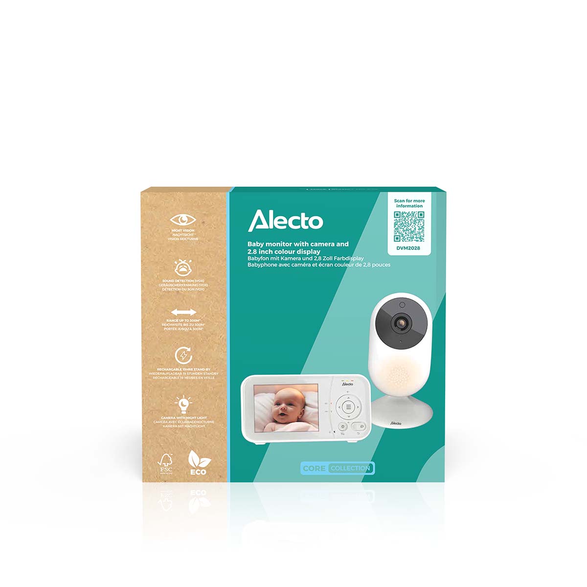 Die vom DVM2028 verwendete Kommunikationstechnologie, Digital 2.4GHz FHSS, sorgt für eine stabile und sichere Verbindung zwischen der Baby- und der Elterneinheit. So müssen Sie sich keine Sorgen über Störungen oder unbefugten Zugriff machen: 100 % störungsfrei und Privatsphäre garantiert!