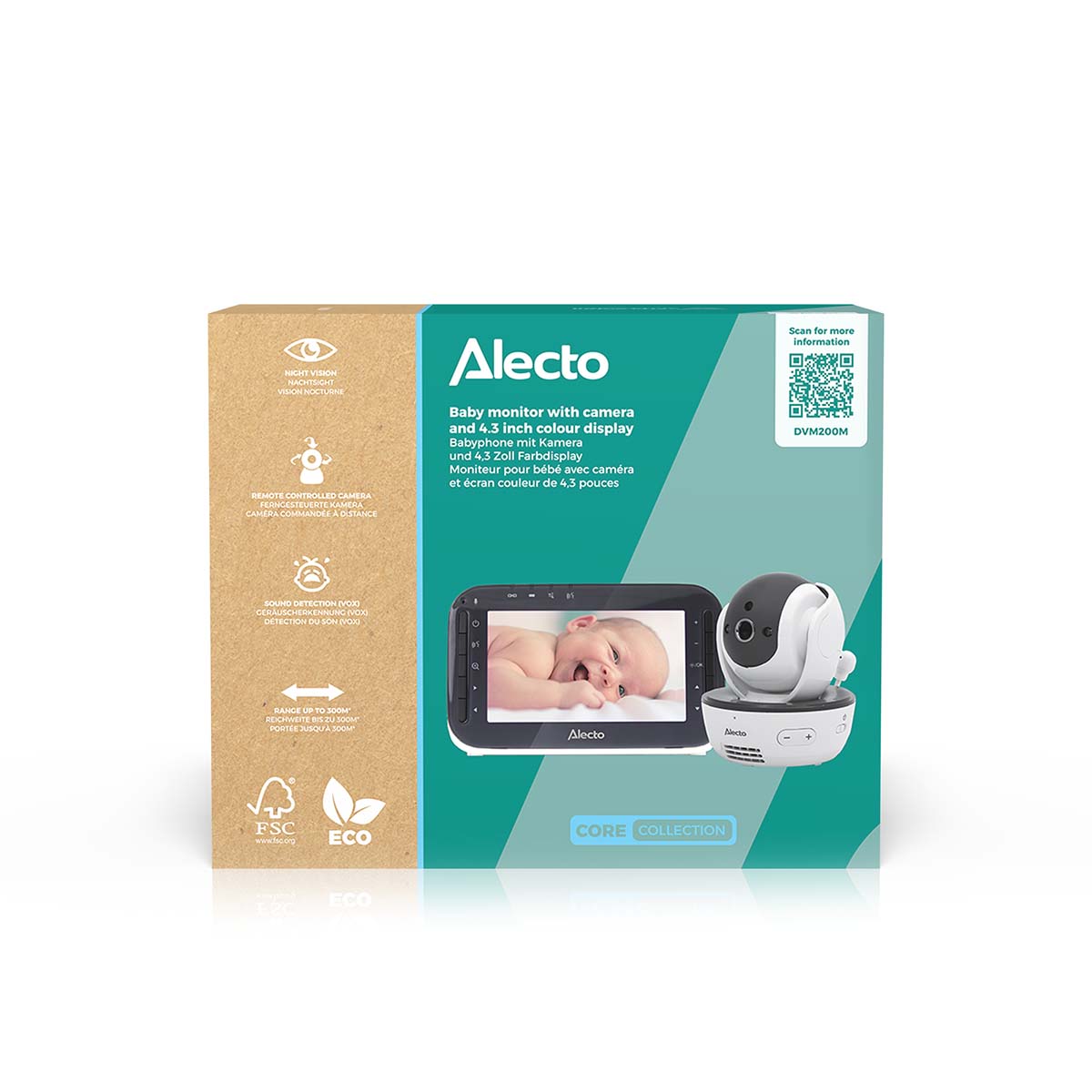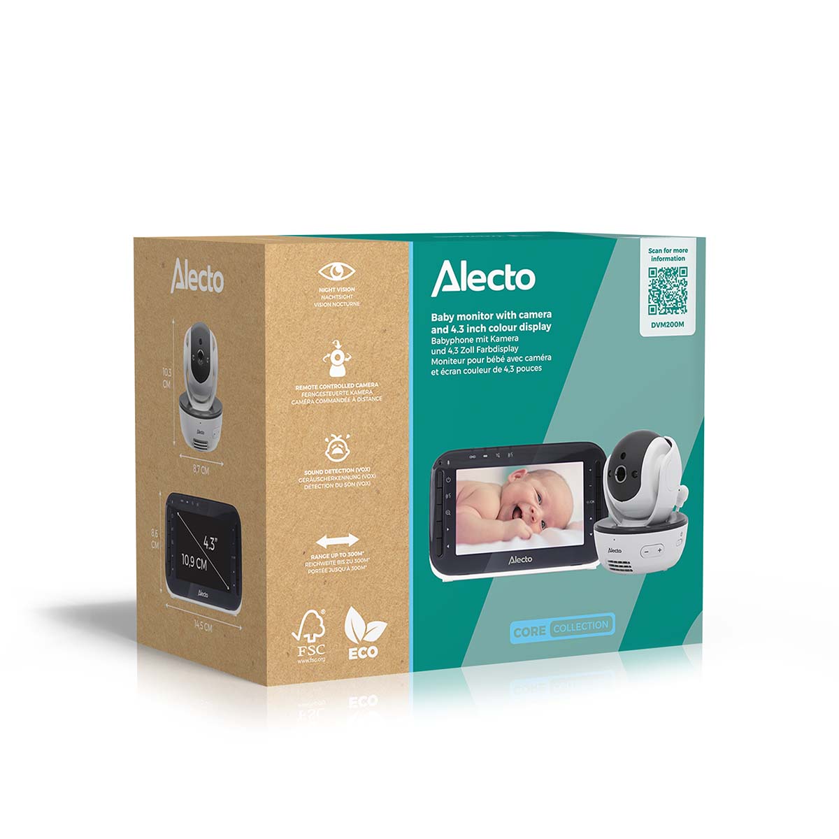 Das Alecto Baby DVM200M ist ein Babyphone mit Kamera und mit einer hervorragenden Bild- und Tonqualität. Die Babyphone der DVM-200-Serie gehören seit Jahren zu den meistverkauften Babyphonen. Mit dem DVM200 können Sie Ihr Baby über die kabellose, wiederaufladbare Elterneinheit natürlich immer hören und sehen. Auf dem großen 4,3 Zoll / 10,9 cm Farbbildschirm können Sie sofort sehen, was im Kinderzimmer vor sich geht. Und das alles über die Babyeinheit, die ferngesteuerte Kamera mit kristallklarem Ton und klarem Bild, und das nicht nur bei Tag, sondern auch in der Nacht. Insgesamt können bis zu 4 Kameras an die Elterneinheit angeschlossen werden (DVM200C). Neben den grundlegenden Funktionen verfügt dieses Babyphone über viele Zusatzfunktionen, die es zu einem vollausgestatteten Gerät machen.