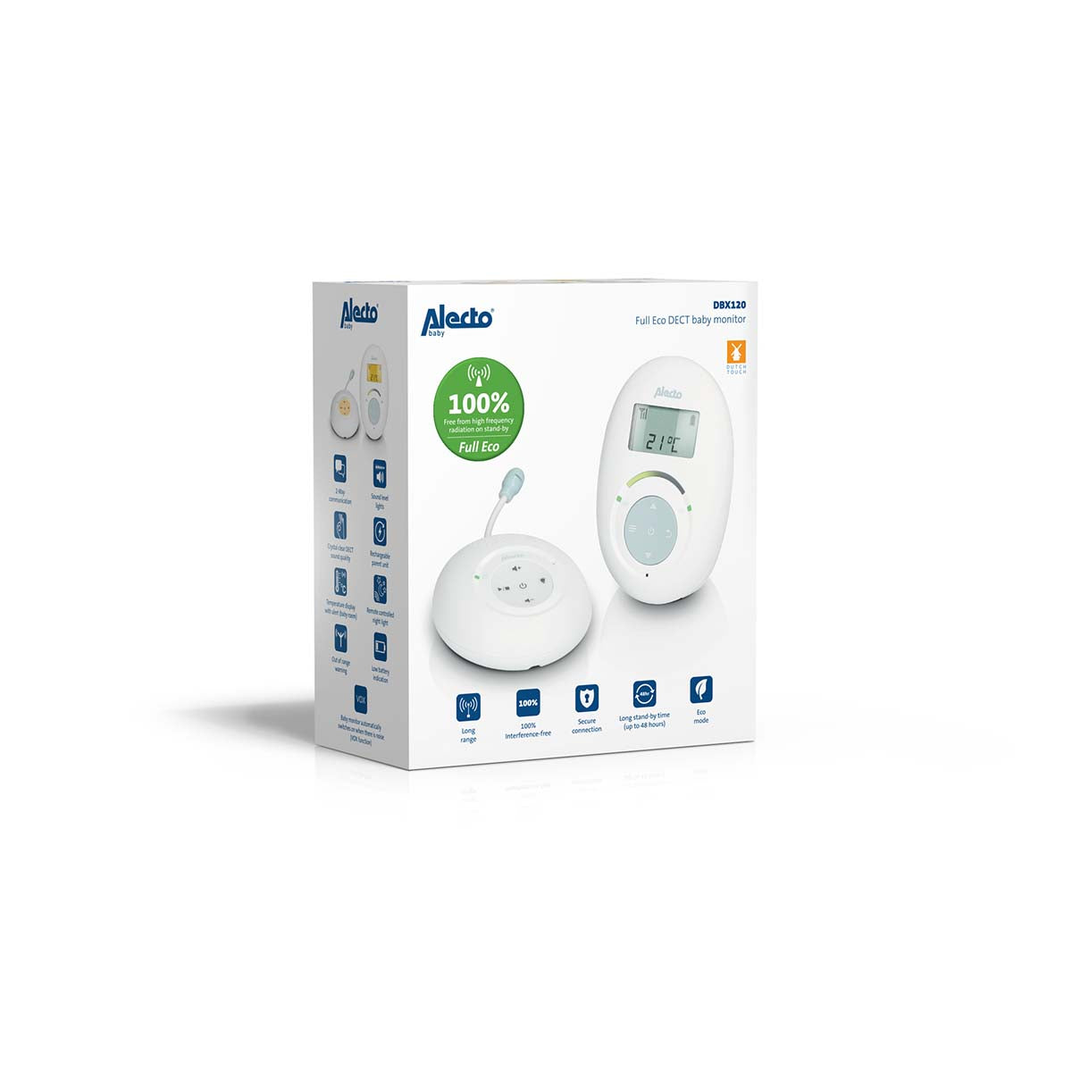 Wie alle Babycare-Produkte von Alecto hilft Ihnen dieses Babyphone, um Ihrem Kind die bestmögliche Pflege zu geben. Unter anderem durch: