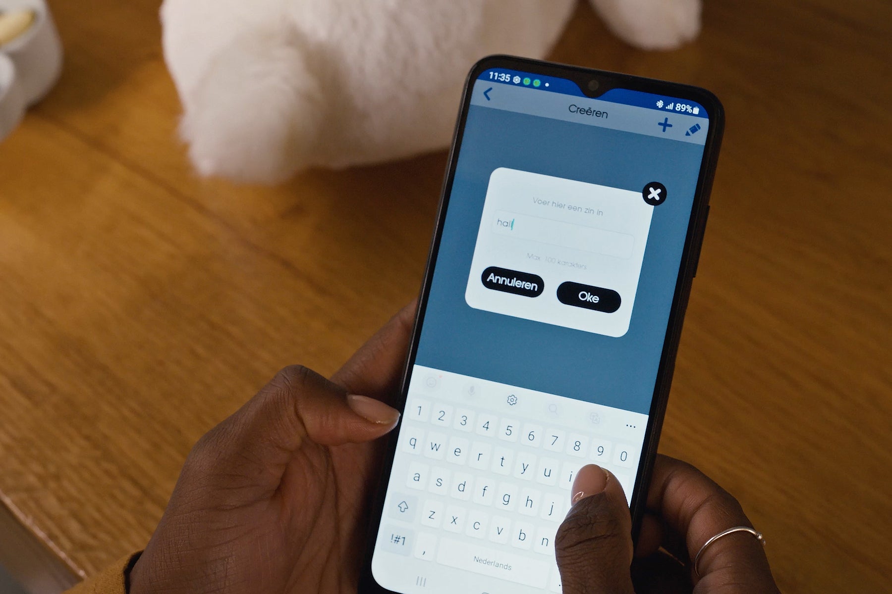 Der Alecto Baby HeeHee-Sprechknopf wird mit 3 lustigen Silikonhüllen (vierblättriges Kleeblatt, Blume und Sonne) geliefert, von denen Sie eine über dem Knopf anbringen. Das mitgelieferte Klettband macht es einfach, den Knopf an einem Kuscheltier anzubringen und auch wieder abzunehmen. Es gibt genügend Klettbänder, um den Knopf an bis zu 3 Stofftieren zu befestigen. Laden Sie die kostenlose HeeHee-App für Android und iOS herunter und installieren Sie sie. Vergewissern Sie sich, dass Bluetooth® eingeschaltet ist, und stellen Sie mit dem Knopf eine Verbindung her. Wählen Sie Ihre bevorzugte Sprache (Niederländisch, Englisch, Deutsch, Französisch, Spanisch, Dänisch, Norwegisch und Schwedisch) und das Wunder kann beginnen.