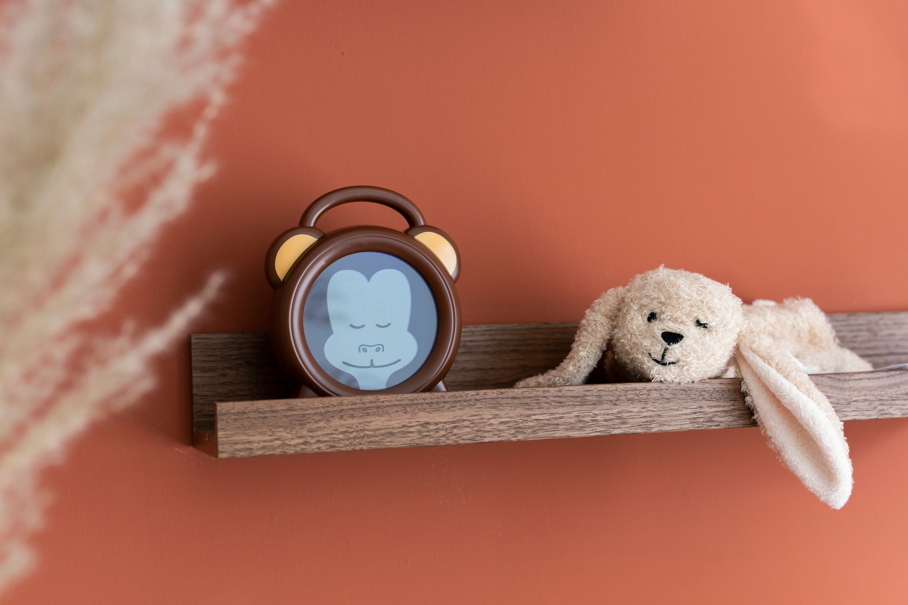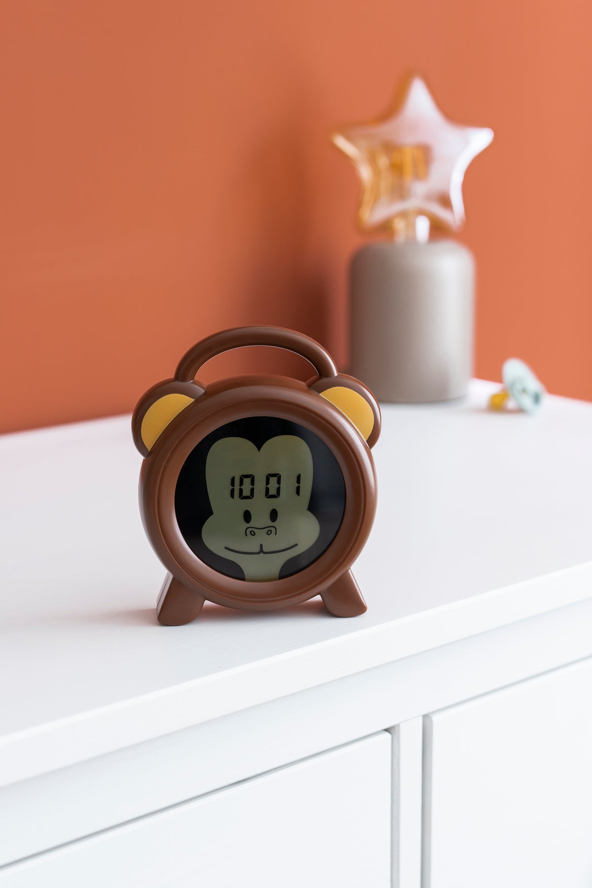 Als Mutter oder Vater stellen Sie am BC-100 Sleep Timer eine Zeit ein, die Sie für das Aufstehen für geeignet halten. Sie stellen den Schlaftrainer im Schlafzimmer Ihres Kindes auf, wo es ihn gut sehen kann. Das Display ist nachts blau und zeigt auch den Mond an. Dies ist ein Zeichen für Ihr Kind, im Bett zu bleiben. Wurde die von Ihnen festgelegte Zeit erreicht? Dann springt der BC-100 Schlaftrainer auf ein orangefarbenes Display, das eine Sonne zeigt. Zeit zum Aufstehen! Auf diese Weise können Sie jedem Kind - auch wenn es noch keine Uhr stellen kann - beibringen, länger im Bett zu bleiben und Ihnen mehr Schlaf zu geben.