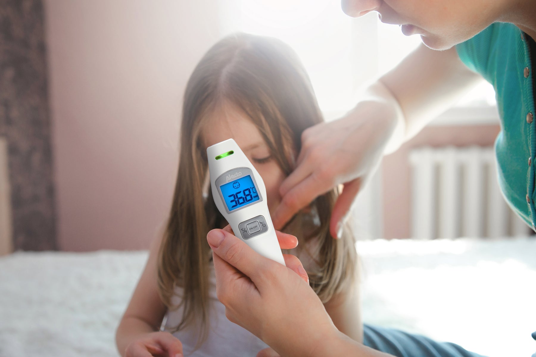 - Das genaue Stirnfieberthermometer misst die exakte Temperatur.