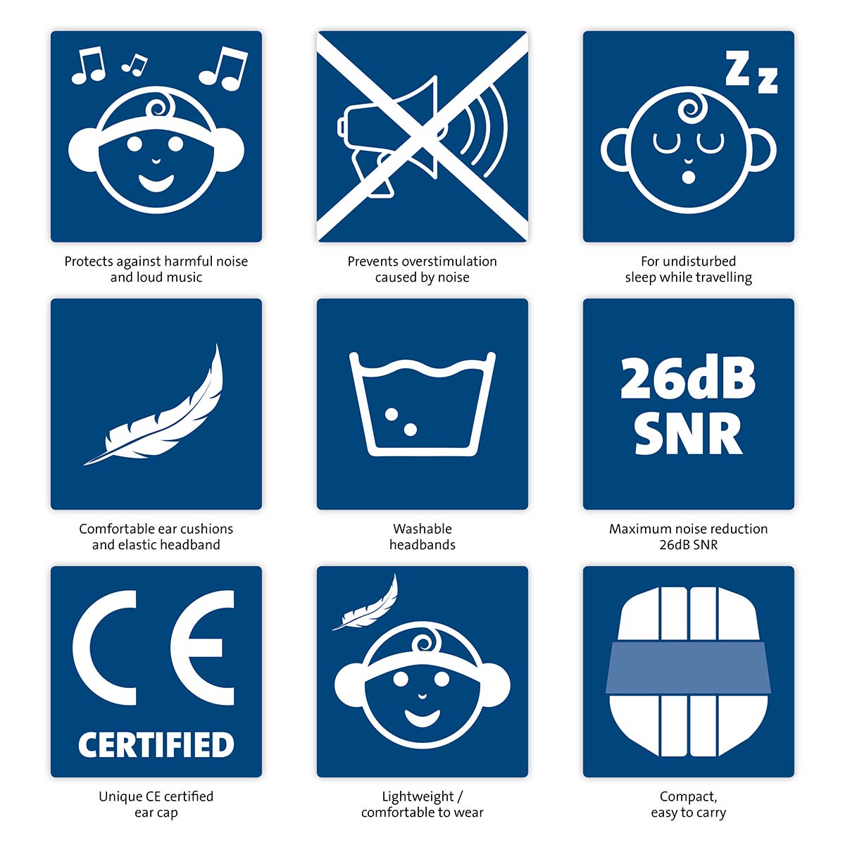• Die weichen, leichten Ohrpolster und das verstellbare, elastische Kopfband sorgen für einen bequemen Sitz und helfen dem Kind, ungestört zu schlafen, z. B. wenn es unterwegs ist.
