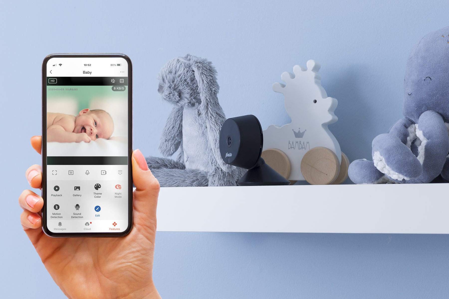 Verbinden und steuern Sie das WiFi-Babyphone mit der kostenlosen Smart Life App. Das funktioniert sowohl unter Android als auch unter iOS. Die App ist einfach zu installieren und zu bedienen. Mit dieser praktischen App können Sie Videos direkt auf Ihrem Handy speichern und Screenshots in HD-Auflösung (1920x1080p) aufnehmen. Wenn Sie fortlaufend Bilder aufnehmen möchten, legen Sie eine Micro-SD-Karte ein, und schon können Sie die Bilder ganz einfach über die App überprüfen.